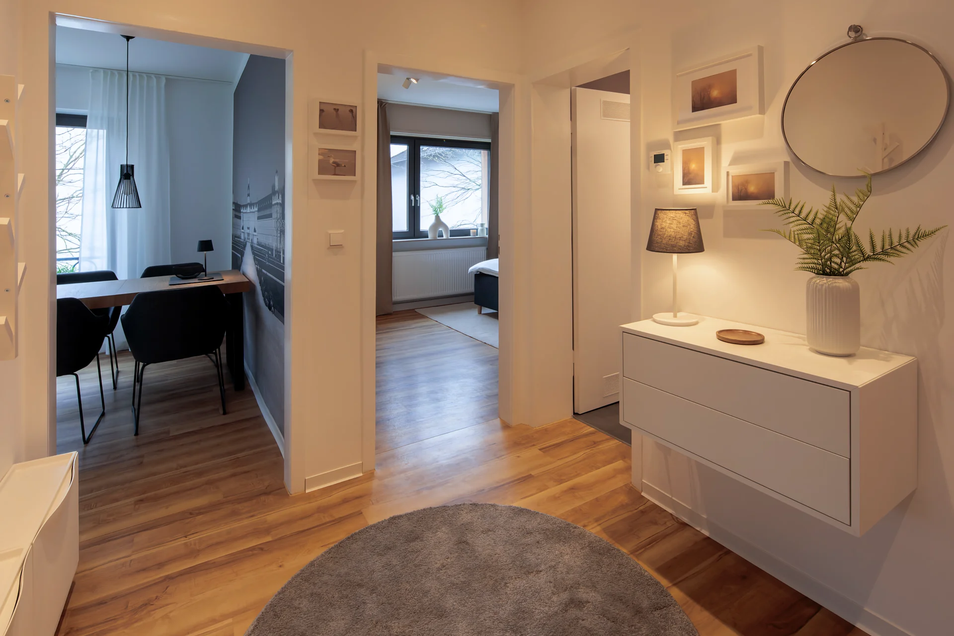 Mit zwei gemütlichen Schlafzimmern, einer voll ausgestatteten Küche, einem modernen Badezimmer und einem geräumigen Wohnzimmer mit Essplatz bietet diese Wohnung alles, was Sie man für einen angenehmen Aufenthalt benötigen. Egal, ob alleine, mit Partner oder der Familie – hier finden man den Komfort und die Bequemlichkeit, die man sich wünscht.