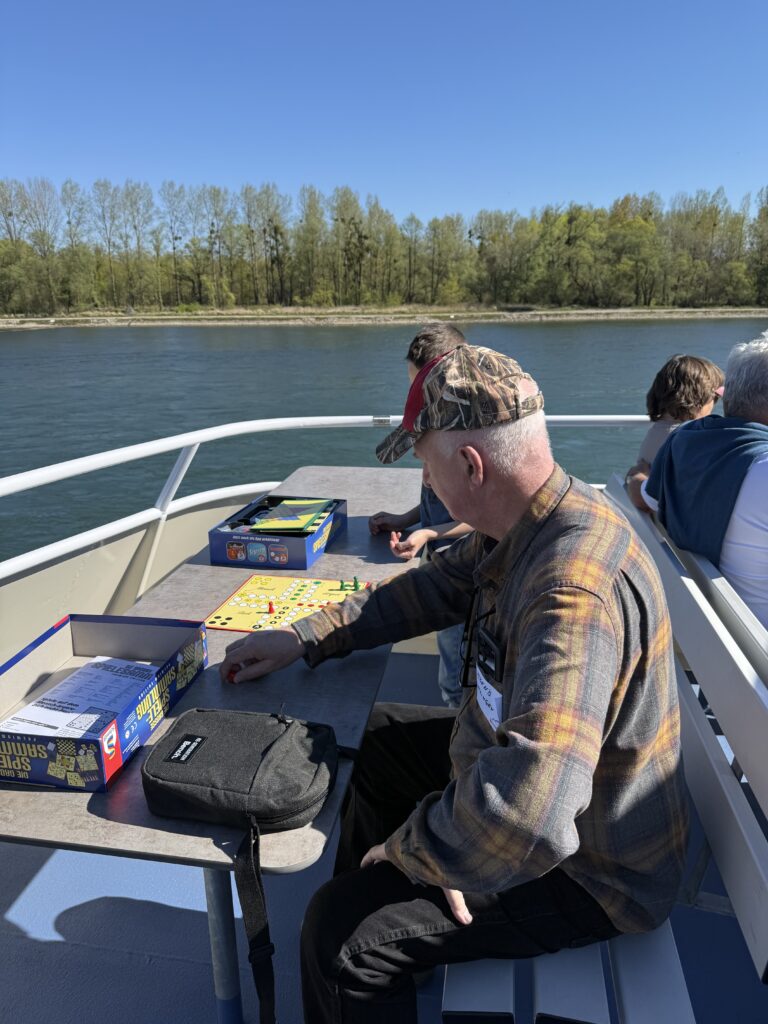 An Bord erwartete die Gäste ein gemütlicher Nachmittag mit Kaffee und Kuchen. Darüber hinaus hatten sich die Kolleginnen aus dem Sozialen Management kleine Kennenlernimpulse überlegt, die auf den Tischen auslagen und schnell für Gesprächsstoff sorgten. Auch an die jüngeren Gäste wurde gedacht – mit bereitgestellten Spielen war für Abwechslung gesorgt.